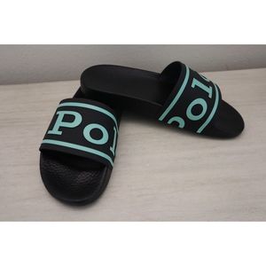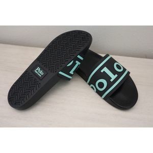 Polo Ralph Lauren Men's Sz 9 Black/Aqua Logo Slide Sandals
