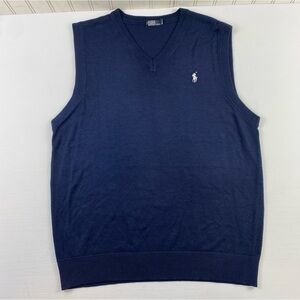 Polo Ralph Lauren Men's V Neck Navy and White Cotton Vest Shirt Sz L
