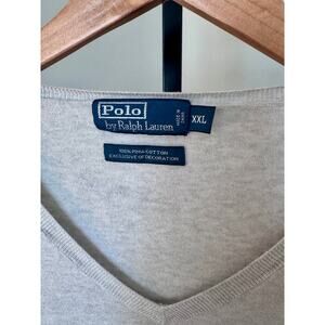 Keywords: Polo, Ralph Lauren, V Neck, Sweater, Knit, Cotton, Logo, XXL, Gray, Menswear, Casual, Smart Casual, Pima Cotton, Designer