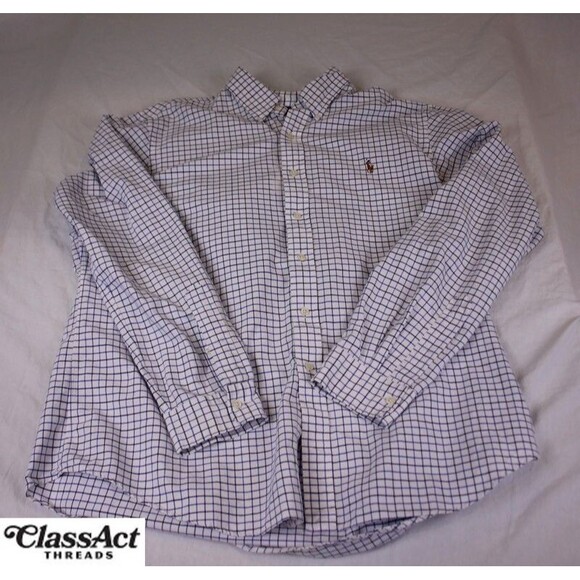 Crafted with the timeless elegance synonymous with Polo Ralph Lauren, this men's white checked button-up shirt is a versatile addition to any wardrobe. Featuring a classic fit that offers both comfort and style, it's designed in a regular size XL to cater to a variety of occasions, from business meetings to casual outings.