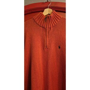 Polo Ralph Lauren Mens XL Burnt Orange Knit Sweater 1/4 Zip Front Dressy Casual