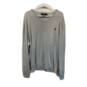 Polo Ralph Lauren Mens XL Gray Pima V Neck Pullover Sweater lightweight FALL