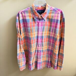 Polo Ralph Lauren Men's XL Shirt Classic Fit Madras Plaid Long Sleeve