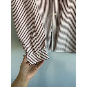 Elevate your casual style with this classic Polo Ralph Lauren men's button-up shirt. The shirt features a striking dark red and white striped pattern with a unique skull design, making it a great addition to any wardrobe. The long-sleeved shirt is made of breathable cotton fabric, making it comfortable to wear during all seasons.