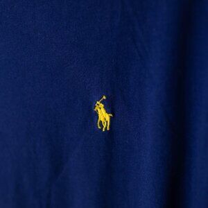 Polo Ralph Lauren Men’s XL V-Neck T-Shirt Navy Blue Yellow Pony Logo - see photos for measurements