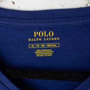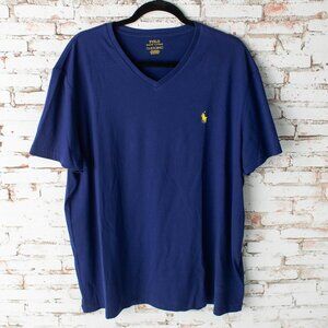 Polo Ralph Lauren Men’s XL V-Neck T-Shirt Navy Blue Yellow Pony Logo