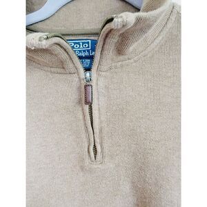 Polo Ralph Lauren Men's XL Vintage Sweater Brown Logo 1/4 Zip LS Cotton