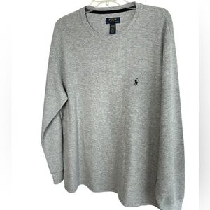 Polo Ralph Lauren Men's XL Gray Waffle Knit Long Sleeve Thermal T-Shirt Cotton Blend Pony Logo