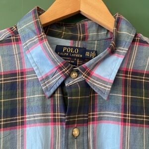 Polo Ralph Lauren Men's XXL Blue Pink Cream Plaid Shirt Classic Preppy Pocket