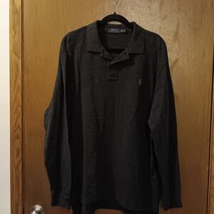 Keywords: Polo Ralph Lauren, Polo Shirt, Long Sleeve, Men's, Gray, XXL, Big and Tall, Casual, Comfortable, Knit, Purple Logo, Classic Fit, Cotton