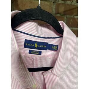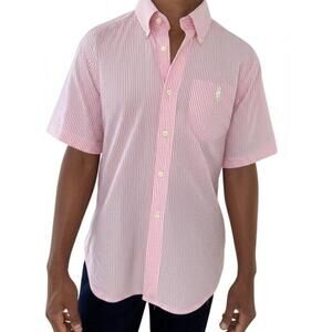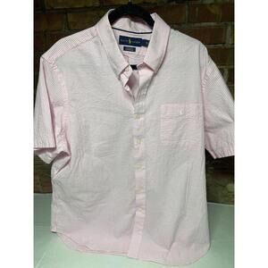 Polo Ralph Lauren Mens XXL Pink Striped Seersucker Short Sleeve Classic Preppy