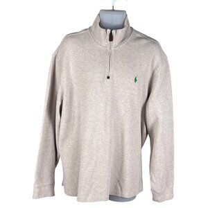 Polo Ralph Lauren Mens XXL Tan Rib Mockneck 1/4 Zip Pullover Old Money Timeless