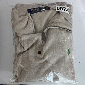 Polo Ralph Lauren Mens Size XXL Tan Ribbed Knit Mockneck Quarter Zip Pullover Old Money Timeless Minimalist