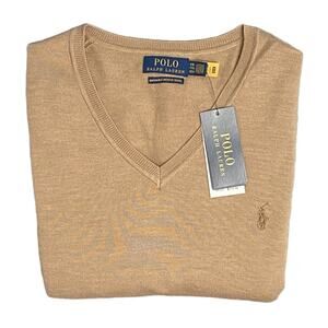 This listing is for a new with tags Polo Ralph Lauren Men's XXL V-Neck Sweater in Brown. Washable Merino Wool, Long Sleeve, Embroidered Logo at Left Chest. 100% Merino Wool, Machine Washable. MSRP $138.