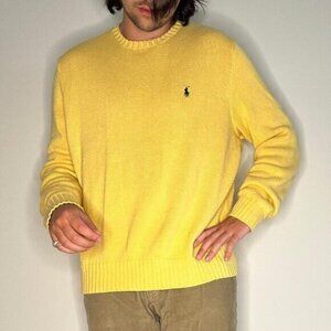 Polo Ralph Lauren Men’s Yellow Cotton Knit Crewneck Pullover Sweater Size Medium