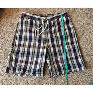 Polo Ralph Lauren Men's swim trunks, Men's Large; Secure pocket; Bathing suit; Plaid Pattern