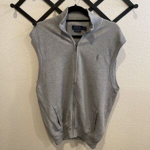 Polo Ralph Lauren Mesh-Cotton Vest Full-Zip Men's X-Large Gray 100% Pima Cotton
