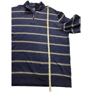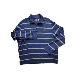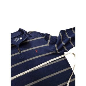 Polo Ralph Lauren Modal cotton Blend 1/4 zip XL mens Blue with gray stripes and red pony logo.good pre-owned condition no stains no holes measurements provided in pictures are approximate please check measurements for proper fit