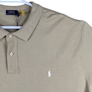 Polo shirt Ralph Lauren men's fashion classic fit, beige polo cotton shirt embroidered logo 4XLT size luxury apparel casual wear timeless style designer clothing new with tags