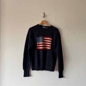 Polo Ralph Lauren Navy American Flag Sweater 90's Vintage Size Small