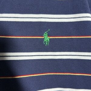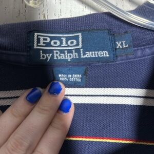 Polo Ralph Lauren Navy Blue Multi Color Stripe Collared Logo Polo Size XL