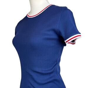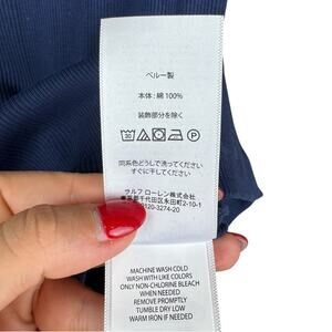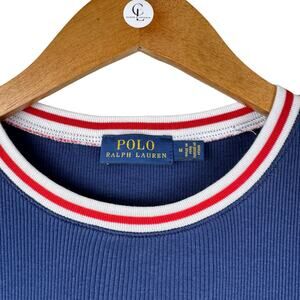 Polo Ralph Lauren Navy Blue Ribbed Red White Trim Logo Slim Fit Baby Tee