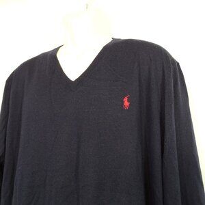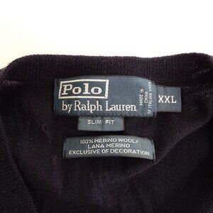 Polo Ralph Lauren Navy Blue Slim Fit Merino Wool V-Neck Sweater Men Size XXL