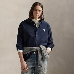Polo Ralph Lauren Navy Blue Yankees MLB Baseball Oxford Shirt Small