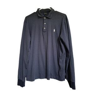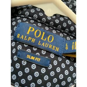 Polo Ralph Lauren Navy Foulard Cotton 3 Button Large Slim Fit Logo Mens Shirt