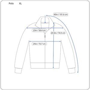 No visible flaws detected. Measurements: Chest = 23 inches, Length = 29 inches, Sleeve Length = 40 inches.