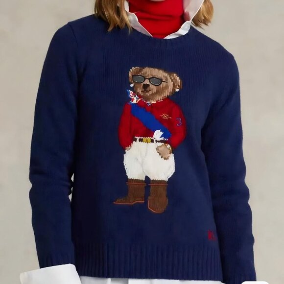 Polo Ralph Lauren Navy blue women's sweater with knight bear pattern