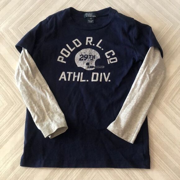 Polo Ralph Lauren Navy Shirt with Gray Sleeves