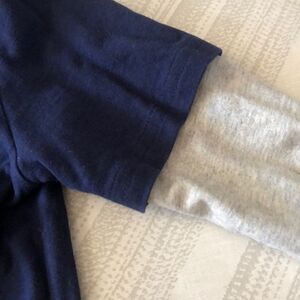 Very gently worn long sleeve shirt. Body is navy with white writing and sleeves heather grey. Made of cotton.