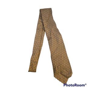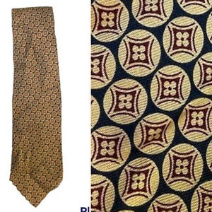 Polo Ralph Lauren Neck Tie 100% Silk Cream Blue Gold Geometric USA Handmade