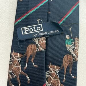Polo Ralph Lauren Necktie Polo Equestrian Sport 100% Silk Handmade In USA Vtg