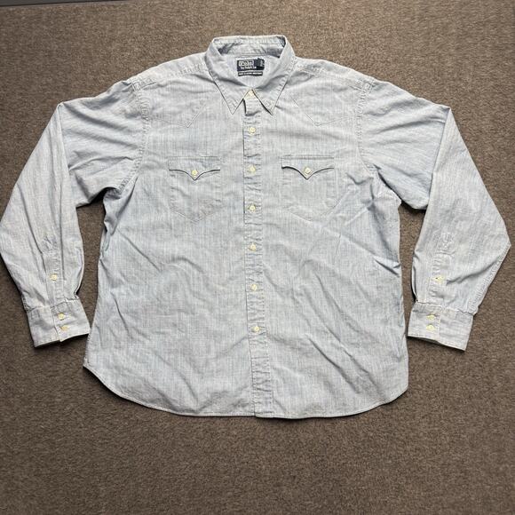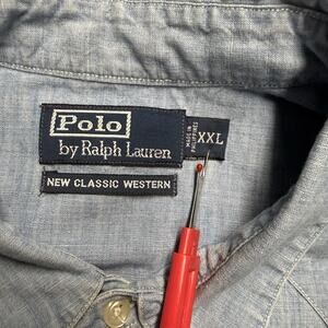 Polo Ralph Lauren New Classic Western Shirt Mens XXL 2XL Blue Chambray Vtg 90's