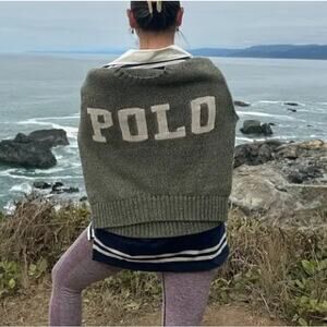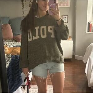 Polo Ralph Lauren Olive Green Logo Sweater LARGE Oversized Cotton Soft Cozy $300