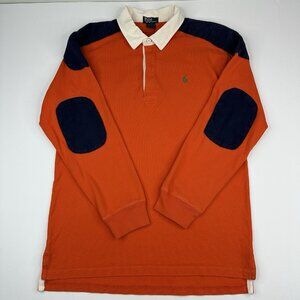 Polo Ralph Lauren men’s size small, sweatshirt Polo style, stretchy, orange with blue patchwork, thick soft fabric,1/4 button v-neck, collared and long sleeves. Materials 100% cotton. Care machine wash cold tumble dry low. Condition is preloved good with slight wash fade, faint stains on front as shown in pictures. Please preview the measurements to ensure fit.
