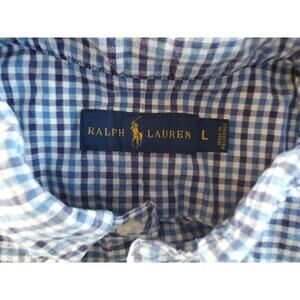 This Polo Ralph Lauren button-up shirt in size L features a classic plaid pattern that's perfect for any casual occasion. The long-sleeved shirt is made from high-quality materials and boasts a stylish design that's sure to turn heads. It's perfect for any man who wants to stay comfortable and look great at the same time.
