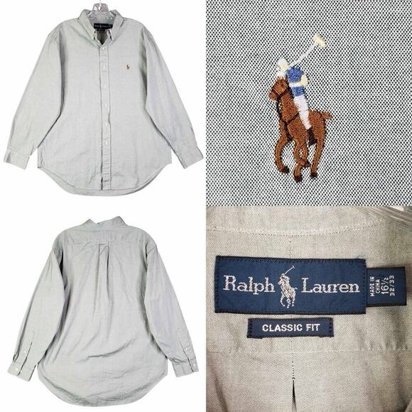 Polo Ralph Lauren Oxford Shirt Mens Size 16.5 Solid Blue LS Button Down