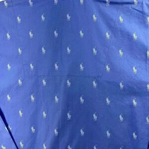 Polo Ralph Lauren's men's pajama shirt offers a comfortable fit for a good night's sleep. It comes in a size 2XL and features a blue color with the brand's iconic pony logo. The shirt has a button-up style, new with tags.