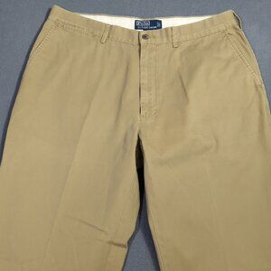 Polo Ralph Lauren Pants Men's 36x34 Tan Cotton Slash Pockets Flat Front Preppy