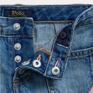 Two front patch pockets. Two back patch pockets. “RL” script embroidered at the front right pocket. Faux-suede “Polo Ralph Lauren” patch at the back right waist.