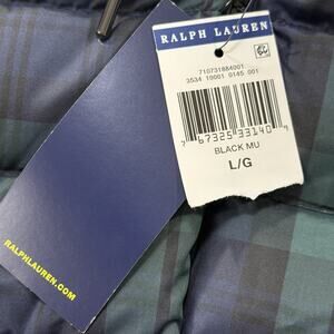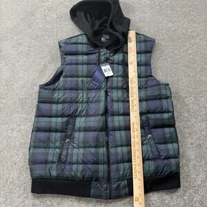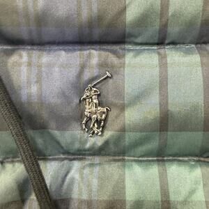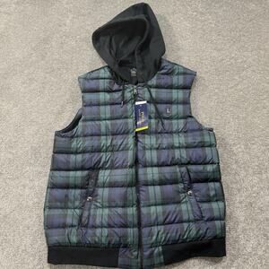 Polo Ralph Lauren Performance Blackwatch Plaid Hooded Puffer Vest L Green Black