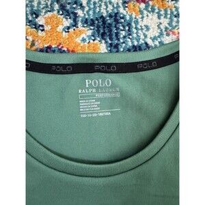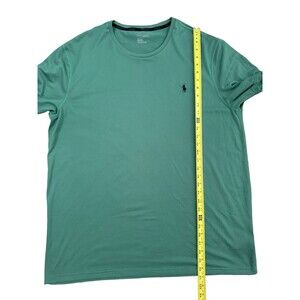 Elevate your sportswear game with this Polo Ralph Lauren Performance Green Short Sleeve Crewneck Tshirt in size 1XB. Crafted with lightweight, quick-drying, and moisture-wicking polyester material, this regular-fit t-shirt is perfect for any sports enthusiast. The solid green color, crew neckline, and short sleeves make it a versatile addition to your wardrobe.