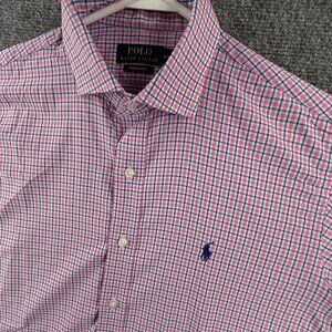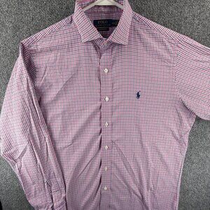 Polo Ralph Lauren Performance Pink Blue Check Long Sleeve Medium Button Up