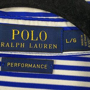 Polo Ralph Lauren Performance Polo Shirt Mens Large Blue White Stripe Golf