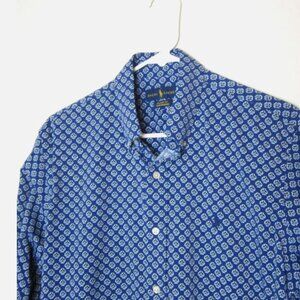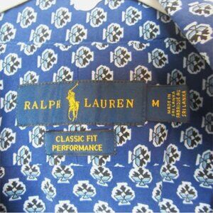 Polo Ralph Lauren Performance Wicking Classic Fit Dress Shirt M Blue Floral Geo