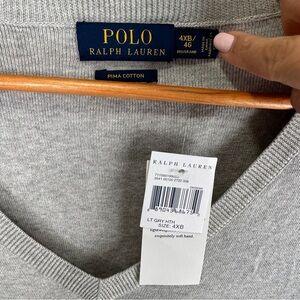Polo Ralph Lauren Pima Cotton Knit Sweater Vest Blue Pony Light Heather Gray 4XB