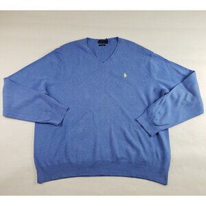 Polo Ralph Lauren Pima Cotton Sweater Mens XXL Blue V Neck Pony Pullover